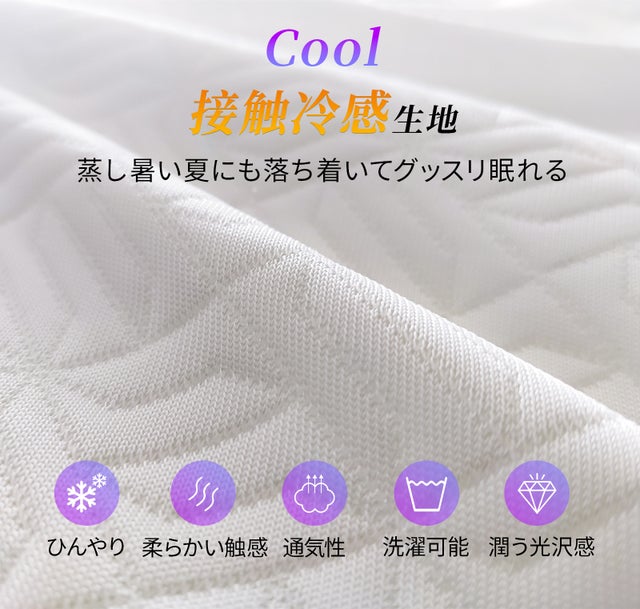 接触冷感生地をアウターカバーに採用しており、放熱性がよく、ひんやりサラサラとした触感が得られます。むし暑い夏の夜も快適に過ごせます。
