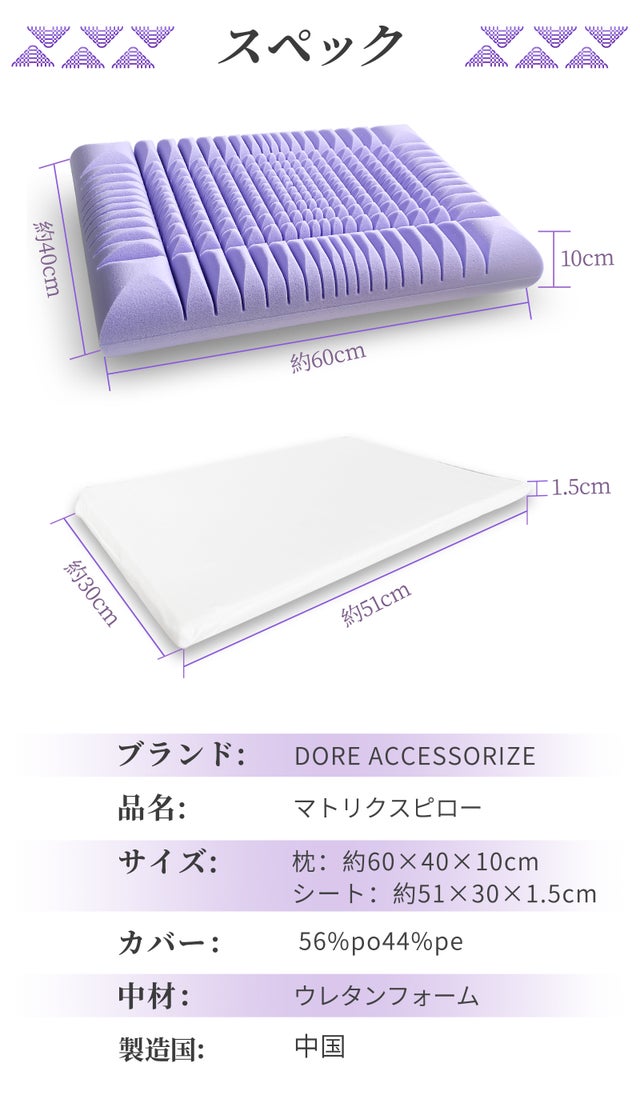 当社は日本登録商標【DOREACCESSORIZE】の所持者です。贅沢なフレンチスタイルの製品取り扱いの会社で、睡眠衛生や寝心地のよいマットレスと枕の先端研究開発に着目して取り組んでおります。好評を博している特許庁出願&登録済みの商品を多数所有しています。枕に工夫を施してより良い睡眠へと導くことにより皆様に理想的な睡眠と元気満々な気分を提供することを目指します。今回はその中最新の枕をご紹介させて頂きました。よりよい品質及びサービスを提供するようスタッフ一同が励んでまいりますので、ぜひご応援くださいませ!