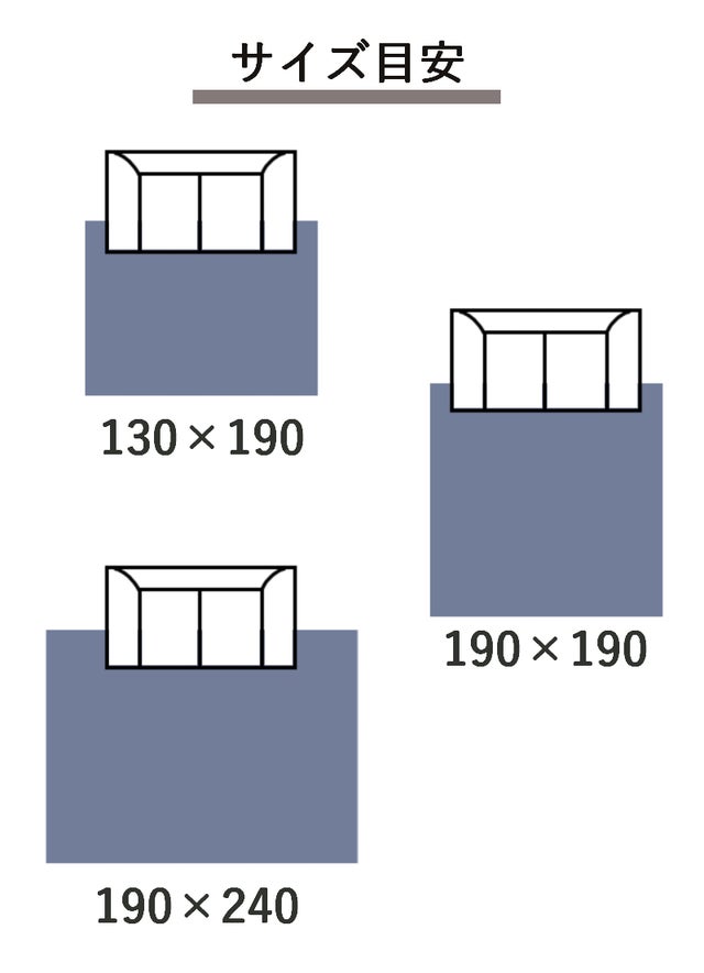 サイズ 130×190cm・190×190cm・190×240cm からお選び下さい。