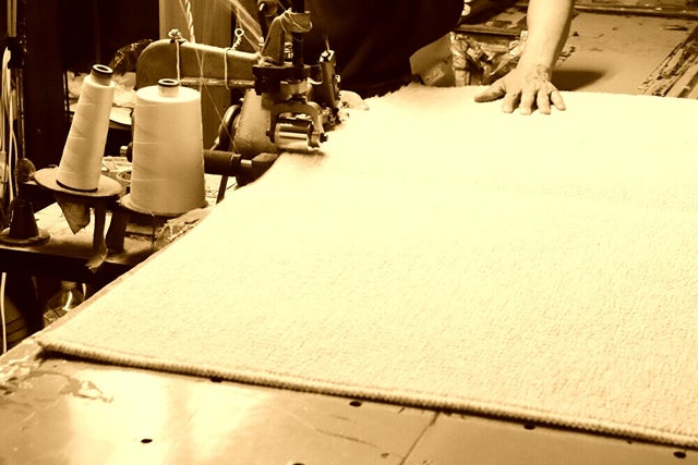 この工程を終えることによってペラペラなものではなく、簡単にめくれ上がったりしない、よりしっかりとした絨毯になります。