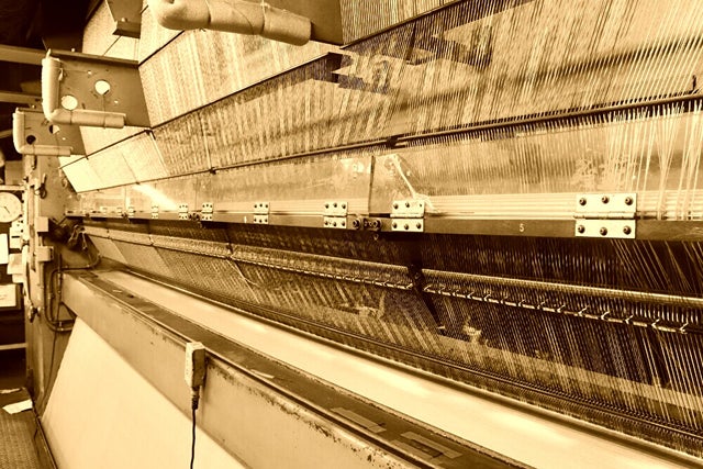 機械にミシンのような針が1000本以上付いており、基布(土台の布)に植え付けるような形で織られていき、絨毯の表面の部分が出来上がります。