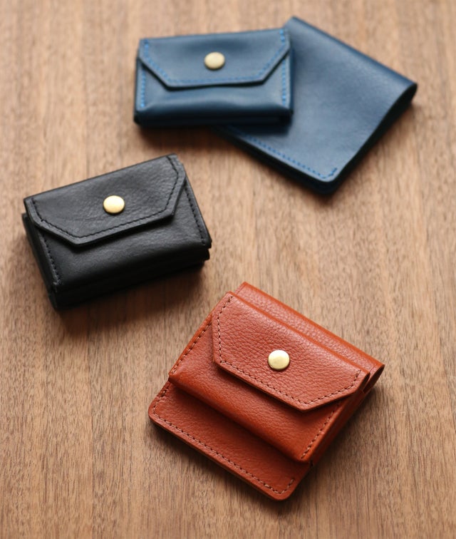 ひとつの財布がスリムな二つ折り、コンパクトな三つ折り、そして超ミニマムの