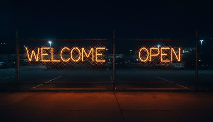 ■駐車場フェンスに「Welcome」や「Open」などの光文字を設置