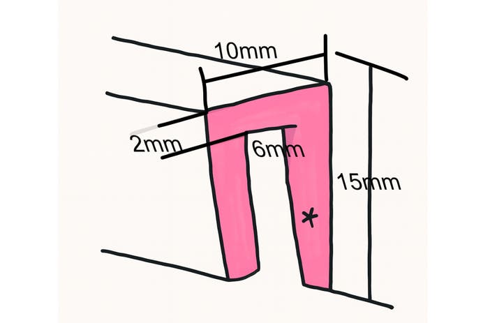 ・方眼クラフト紙の文字にLEDアートキット台座を沿わせて、切り込みを入れる。曲げに応じて、側面と底部の切り込みの密度を変える。