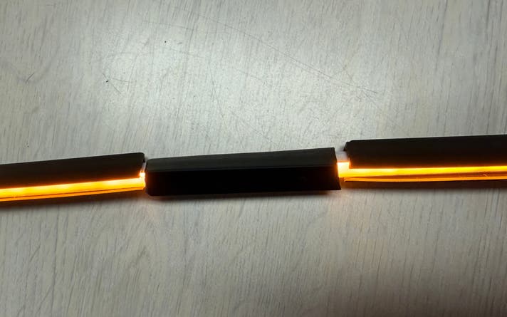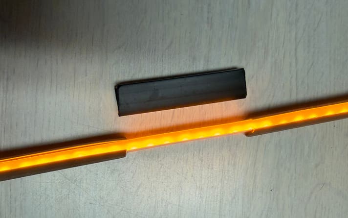 その長さ分STAY・BRIGHTをカットして、通常の反対側の黒い部分でTAPE ライト部分をカバーすれば、明りが漏れず、間が空いた状態になります。