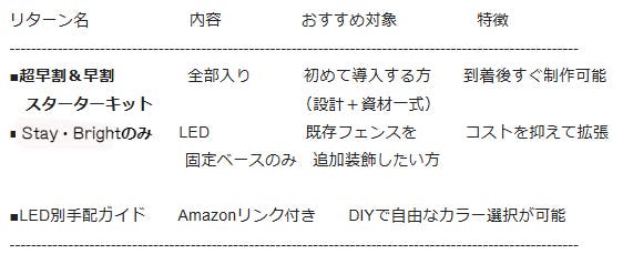 フェンスLEDアートキット(STAY・BRIGHT)&スターターキット30%OFF