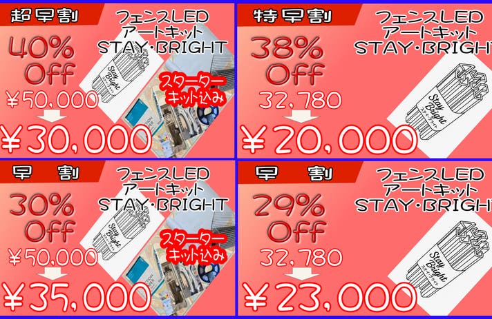 フェンスLEDアートキット(STAY・BRIGHT)&スターターキット40%OFF