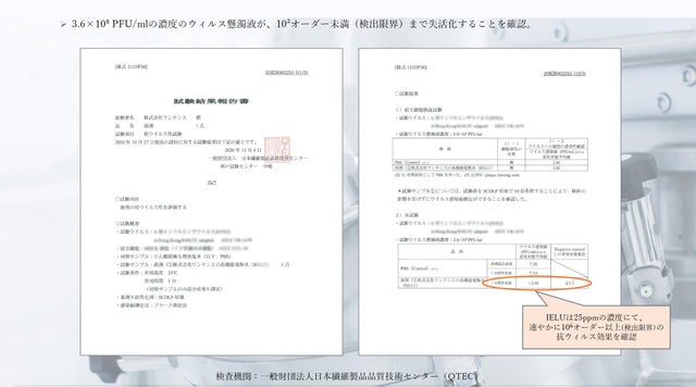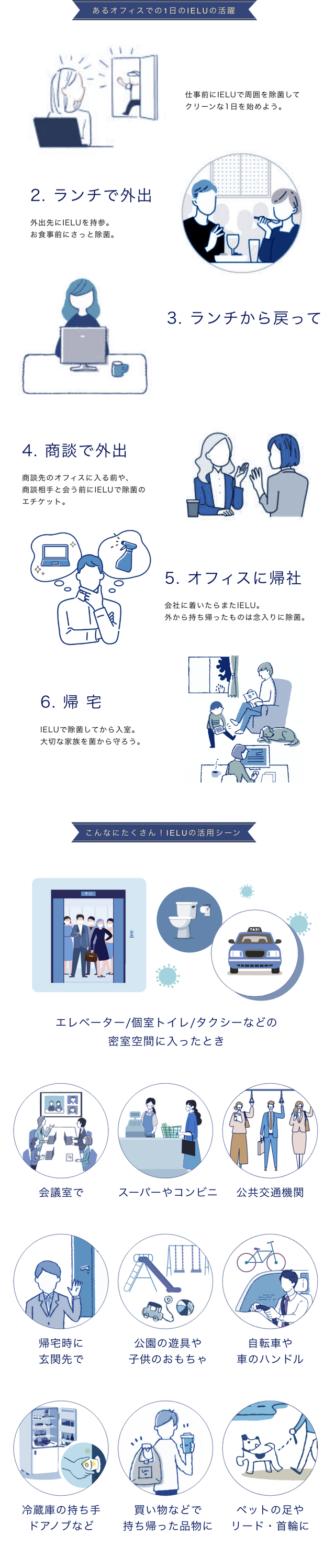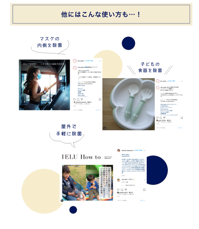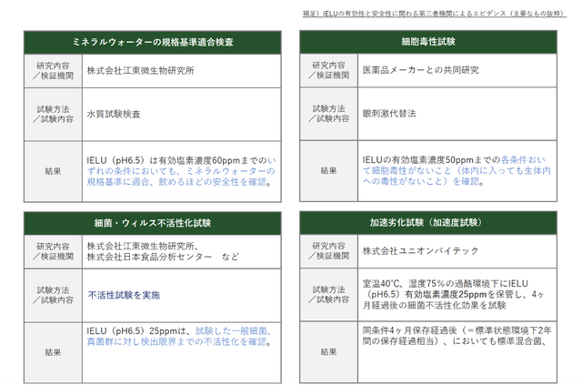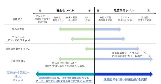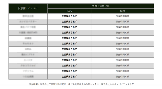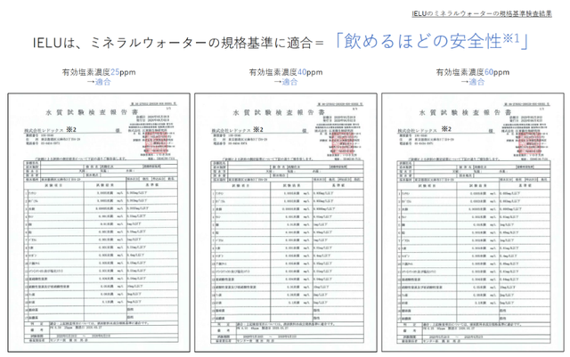 ※「IELU」は人体に使用することを目的に製造された商品ではありませんが、商品特性上、人体にかかることも想定し、清涼飲料水の規格基準をクリアするほどの低濃度で製造するなど除菌力と優しさを両立する商品作りを行なっております。