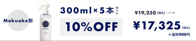 マクアケ割@STELLA×IELU300ml×5本を10パーセントOFF