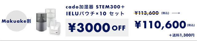 マクアケ割@cado加湿器STEM300+IELUパウチ×10