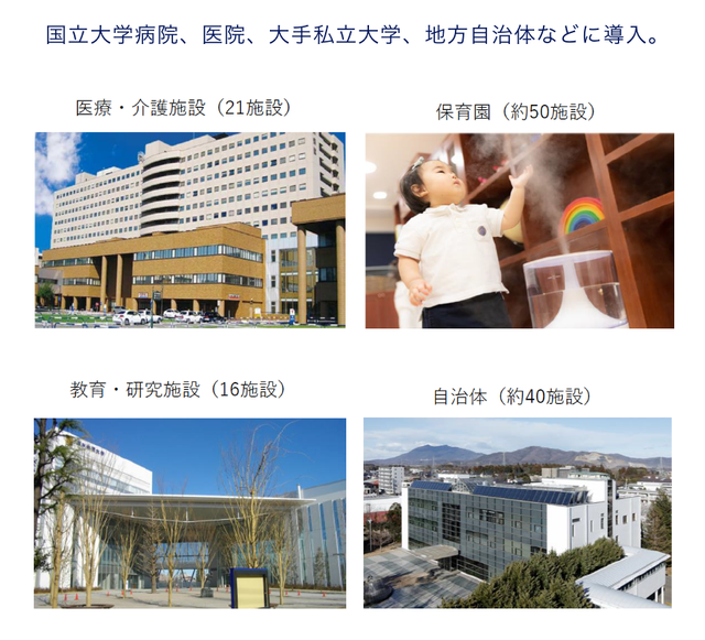 IELU は、医療の現場での使用を目的に開発された経緯もあり、病院・医療施設を中心に、全国約 365 施設 2020 年 9 月時点) に導入され、空間噴霧など日々のオペレーションに使用され、マスコミにも取り上げられています。