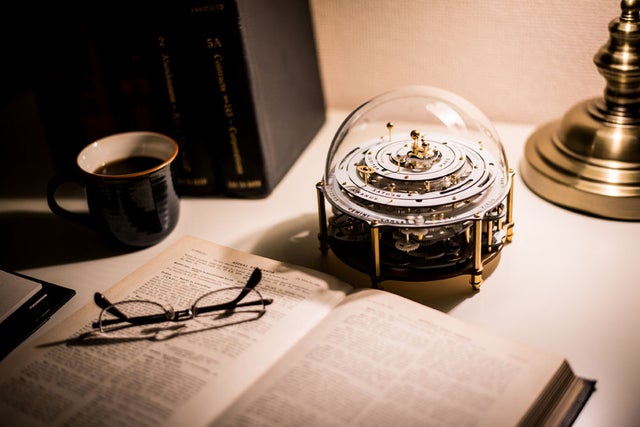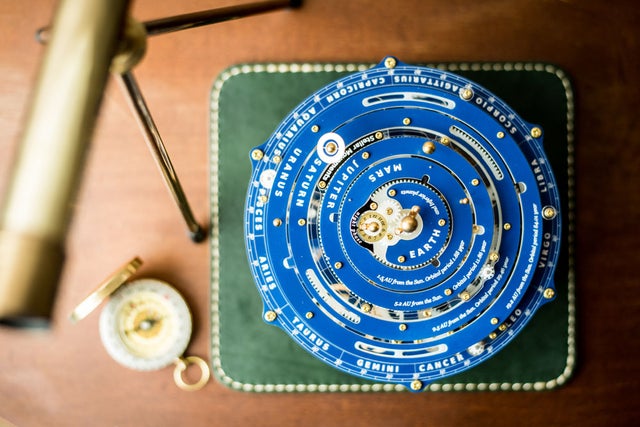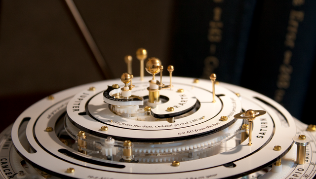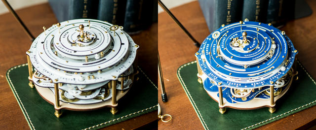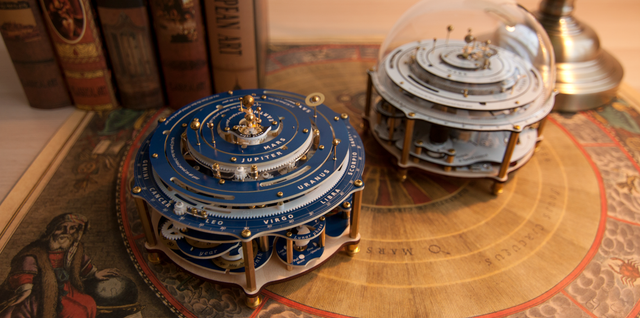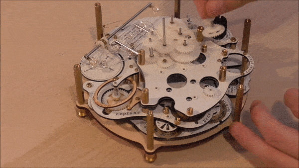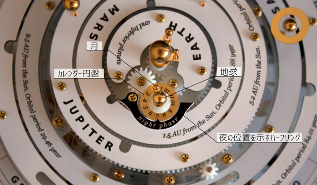 惑星はもちろんのこと彗星や月の満ち欠けもシミュレートする機械式の太陽系儀です。