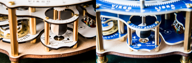 天板上の月と連動して月の満ち欠けを表示します。Stellar Movements上のタイムスケールで約29日で一回りします。