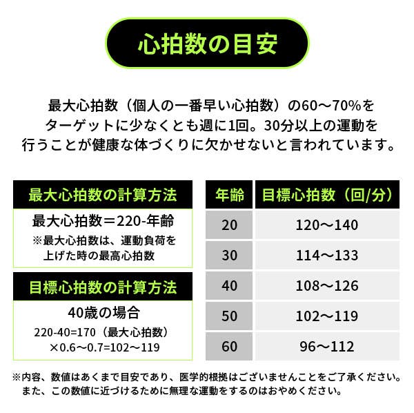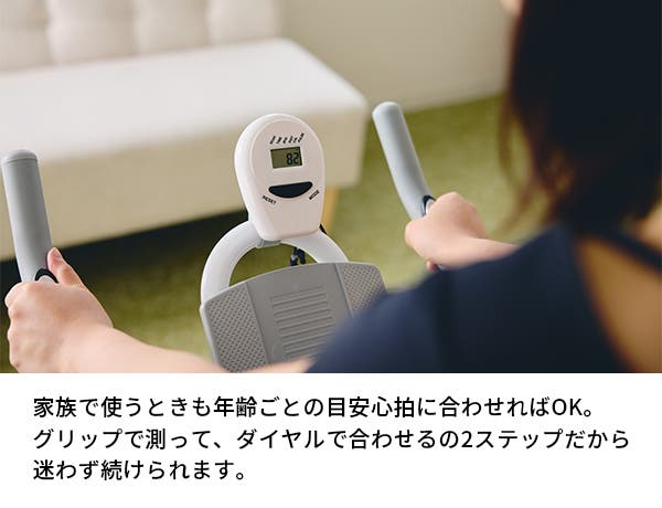 - ただこぐだけで回数・時間・心拍数・消費カロリーが見える!数字で成果が分かるから続けやすい。