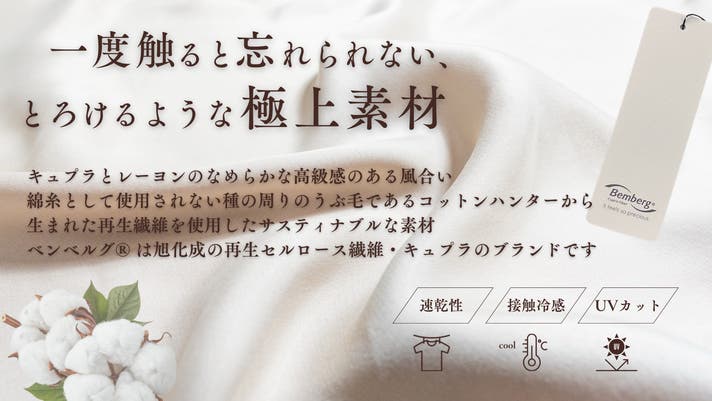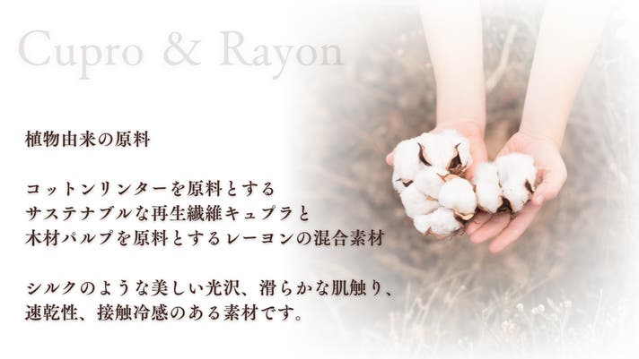 STILLWEARは、そんな季節を心地よく過ごすために接触冷感のある自然由来のキュプラ×レーヨン素材を選びました。