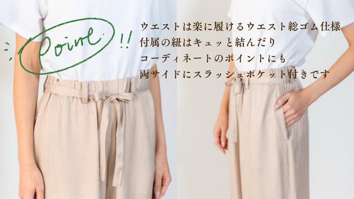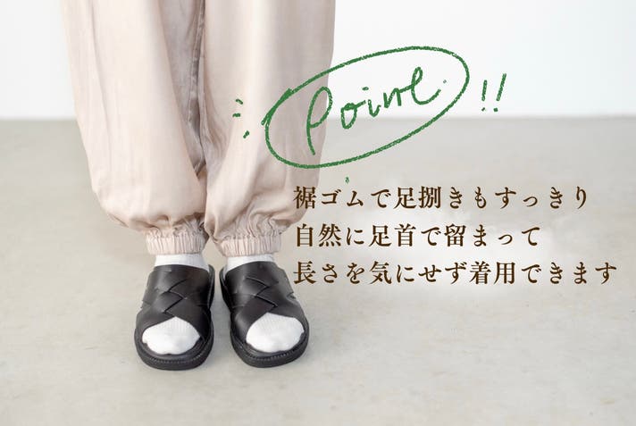 お家でゆったりと過ごしていて、「ちょっとそこまで」にもちょうどいいパンツに仕上がりました!