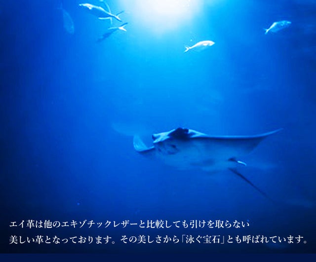 魚のエイは英語ではスティングレーと呼ばれています。「泳ぐ宝石」と言われ、素材としてはとても硬く、古くは武士が持つ日本刀の柄にも使われていました。実はエイはラッキーフィッシュとも呼ばれており縁起のいい魚なのです。ですのでスティングレイを使用した財布は金運アップにも繋がると言われており とても人気があります。