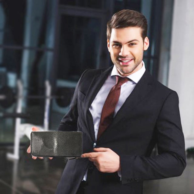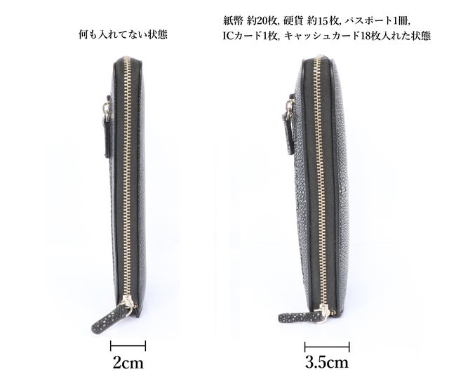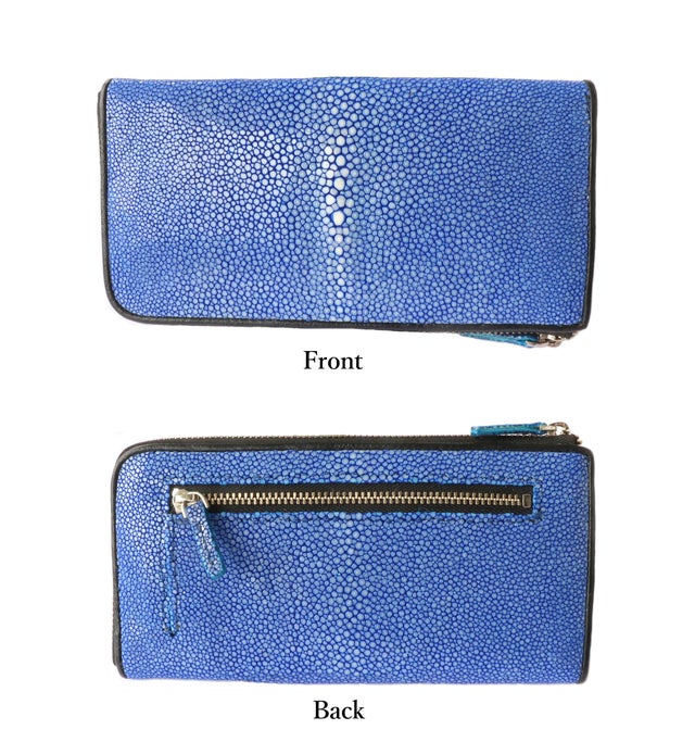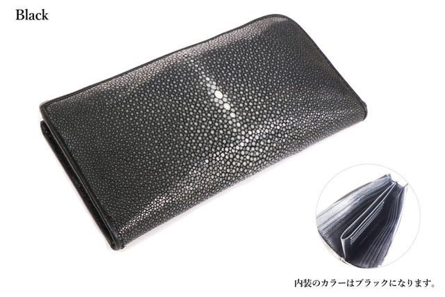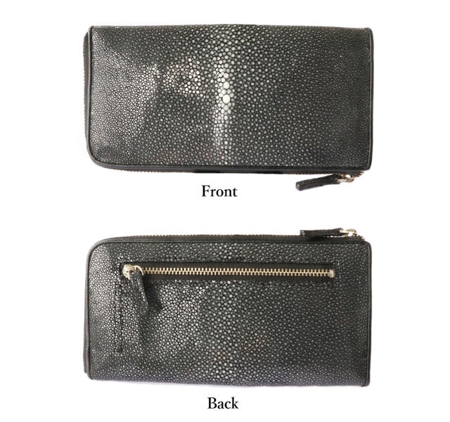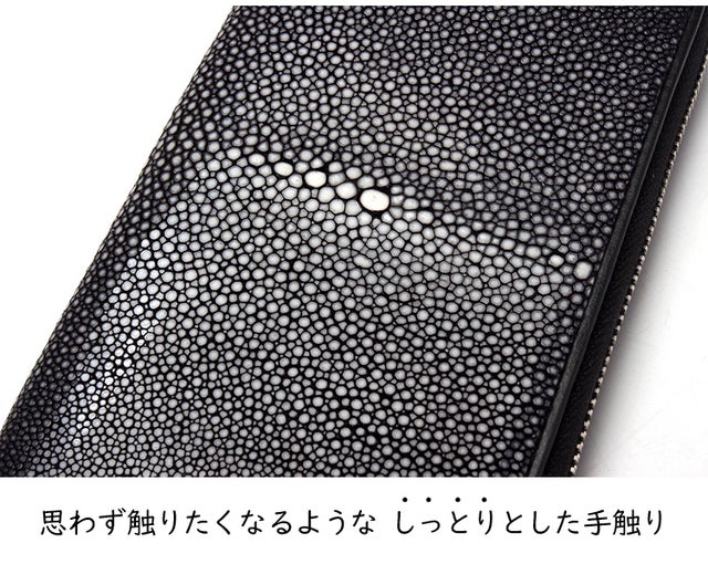 - 海の宝石とも呼ばれるエイ革「スティングレイ」にポリッシュ加工を施した高級仕様の長財布!