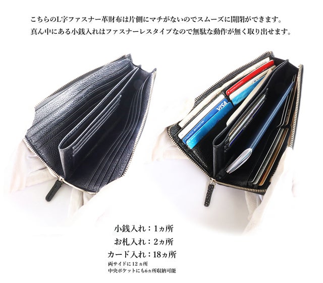 - 機能性を重視し使い易くシンプルな構造を実現。L字ファスナー開閉でスマートなデザインの長財布!