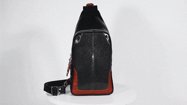 - 「海の宝石」と呼ばれるほどに美しく、価値の高いスティングレイ(エイ革)を使ったボディバッグ