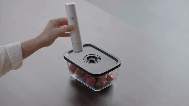 ● ワンタッチ操作:ボタンを押すだけ。約6〜15秒で真空密封完了。※容器サイズにより異なります。
