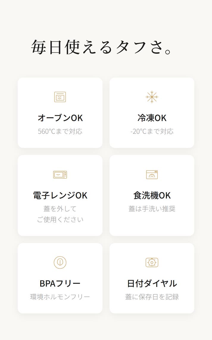 ずっと長く愛用できる、タフなガラス容器。