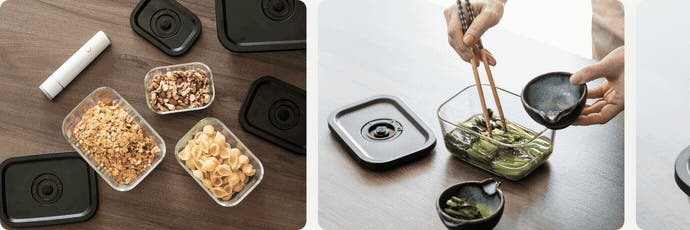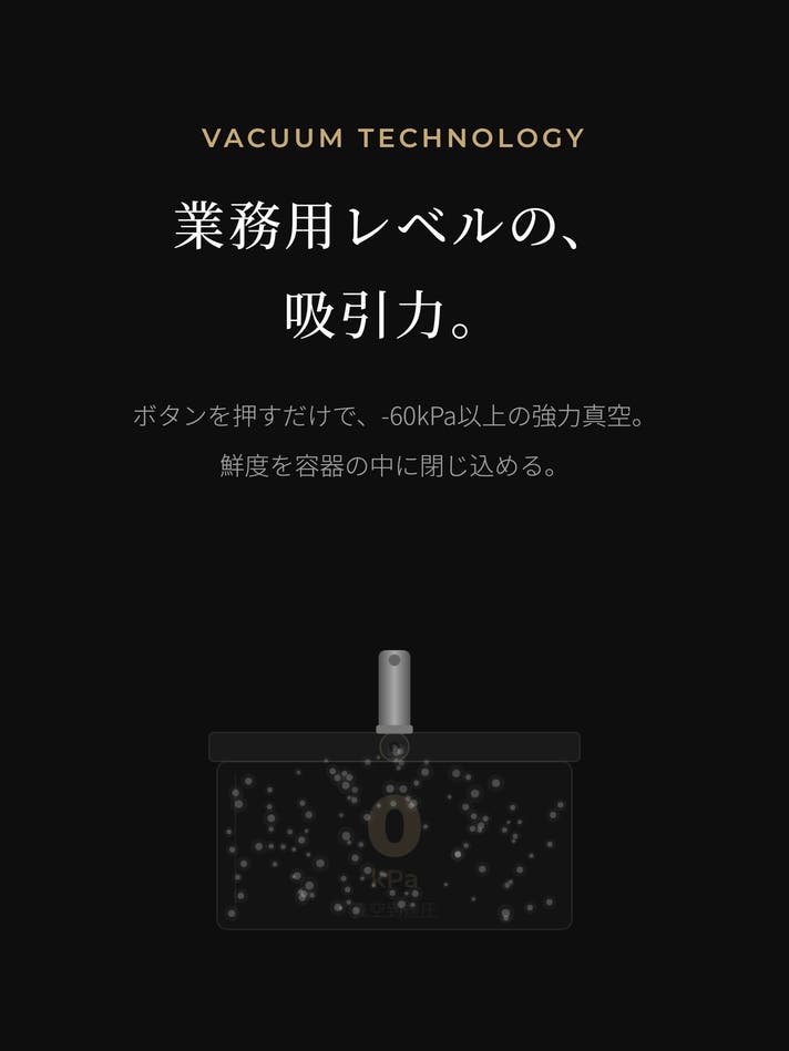 - 「ワンタッチで真空密封」開けるたび、作りたてのようなおいしさを。