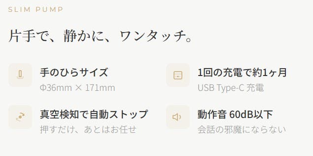 STOQスリムポンプ 仕様