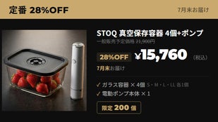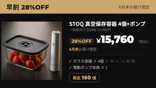 ・STOQ 耐熱ガラス真空保存容器 M(800ml)× 2