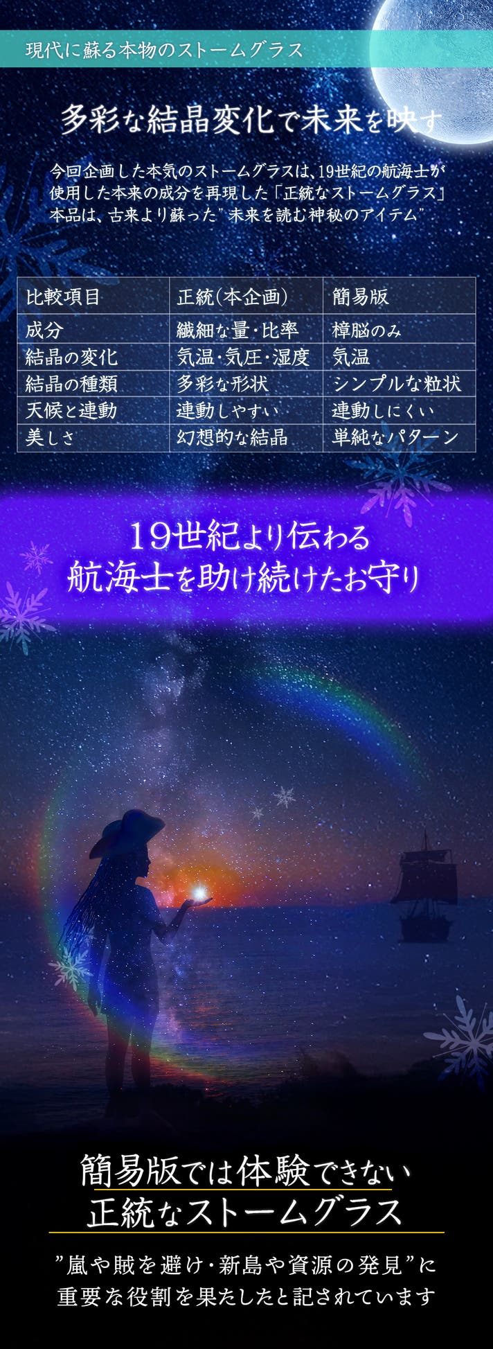 ”特別製のストームグラス”は天候・気温・気圧以外でも美しい結晶が不思議と変化し未来や運命を予測します。