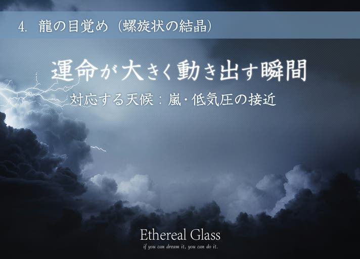 天候や気温によっても、様々な結晶が不思議と交じり合う場合もございます。結晶が描く未来その瞬間にしかない奇跡をお楽しみください!