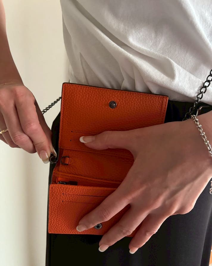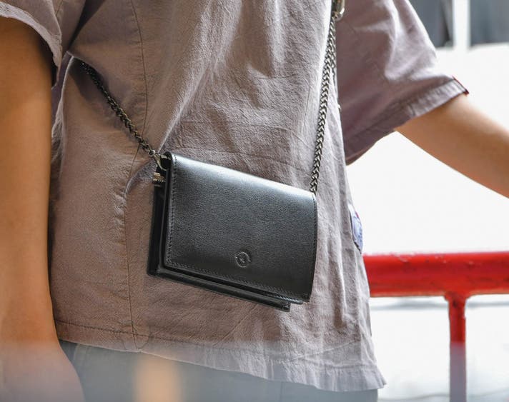 TikTik Walletは、財布としてだけでなく、チェーンを付けるだけで ショルダーポシェットに変形する2WAY仕様。