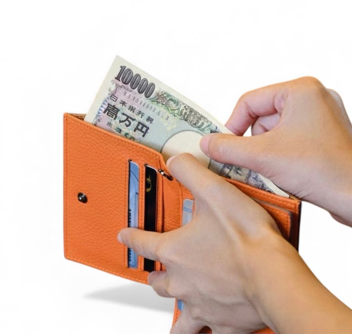 ミニ財布にありがちな “取り出しにくい” を解消しています。