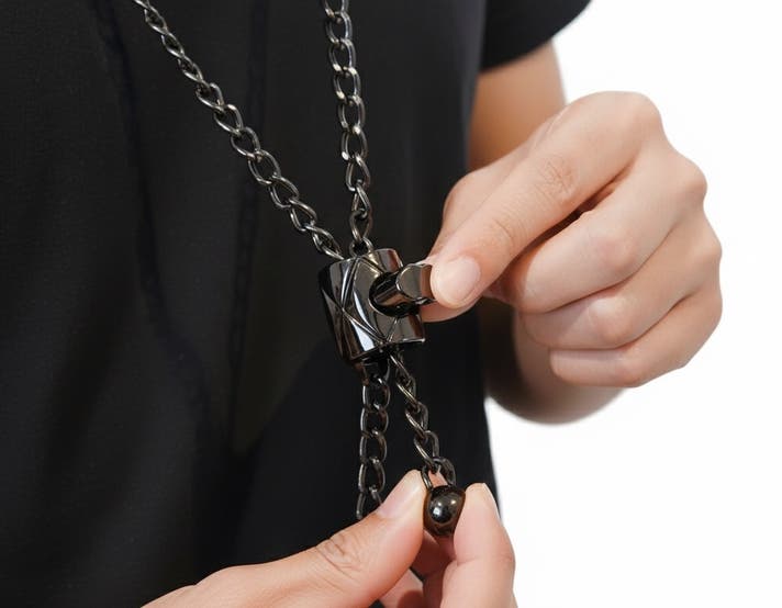 老若男女誰にでもフィット!押すだけで簡単調整可能なチェーン付き