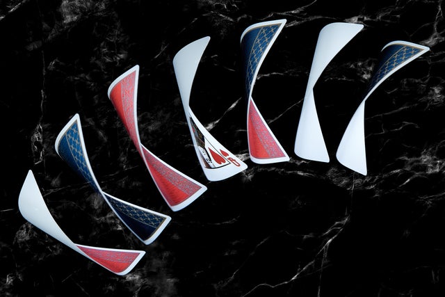 このようなトランプ捌きには、高品質なトランプが必要です。