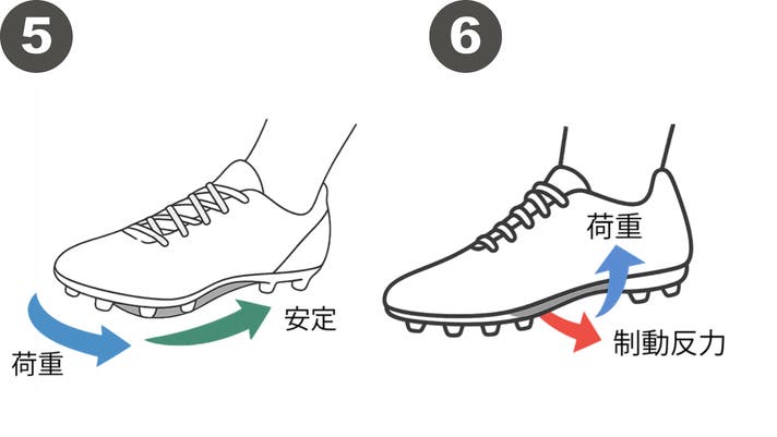 サッカースパイクと一般的なスニーカーでは、 土踏まず部分の幅が大きく異なります。