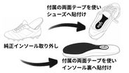 付属の両面テープでSTRYDをシューズまたはインソール裏へ貼付けます。
