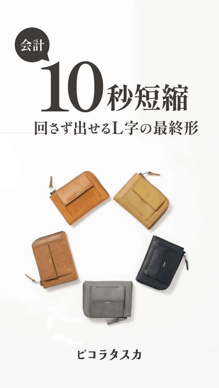- 会計を10秒短縮。財布を回す物理的ロスを構造で排除。最短動線L字ファスナー財布「ピコラタスカ」