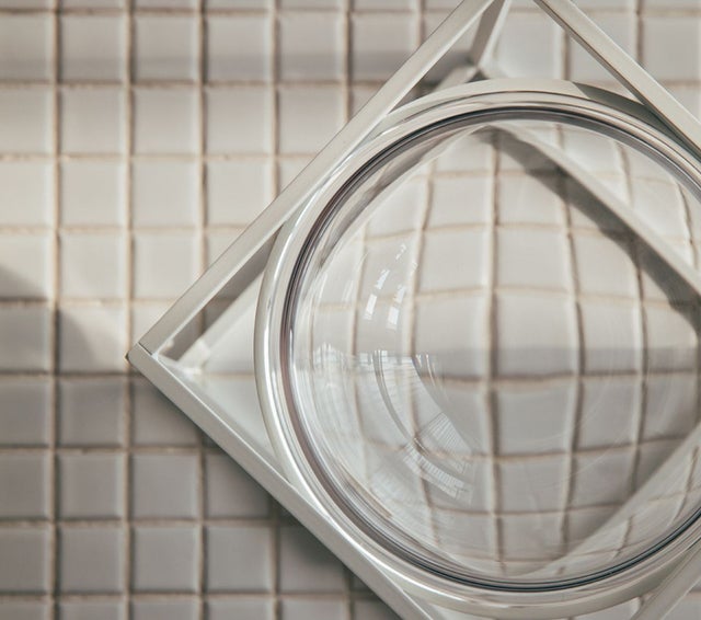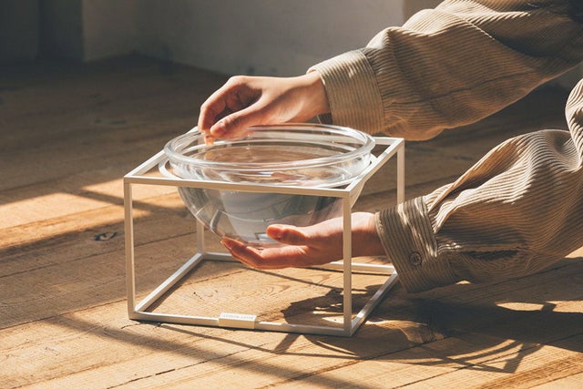 レンズガラスの器は、散乱する"光の影"を作り出します。ペットたちの関心を誘導するように作られた、ペット専用のガラスでできた器です。