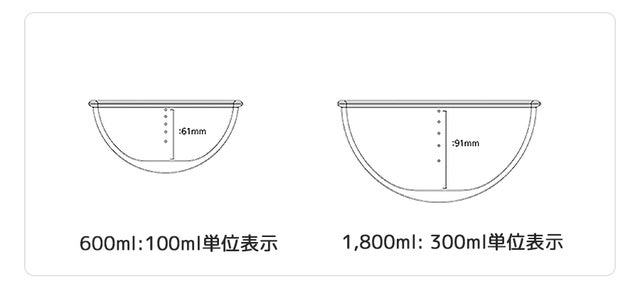 小さいサイズのガラスボールは100mL、大きいサイズのガラスボールは300mLの位置に小さな点が表示されており、ペットが水をどのくらい飲んだか、毎日チェックすることができます。