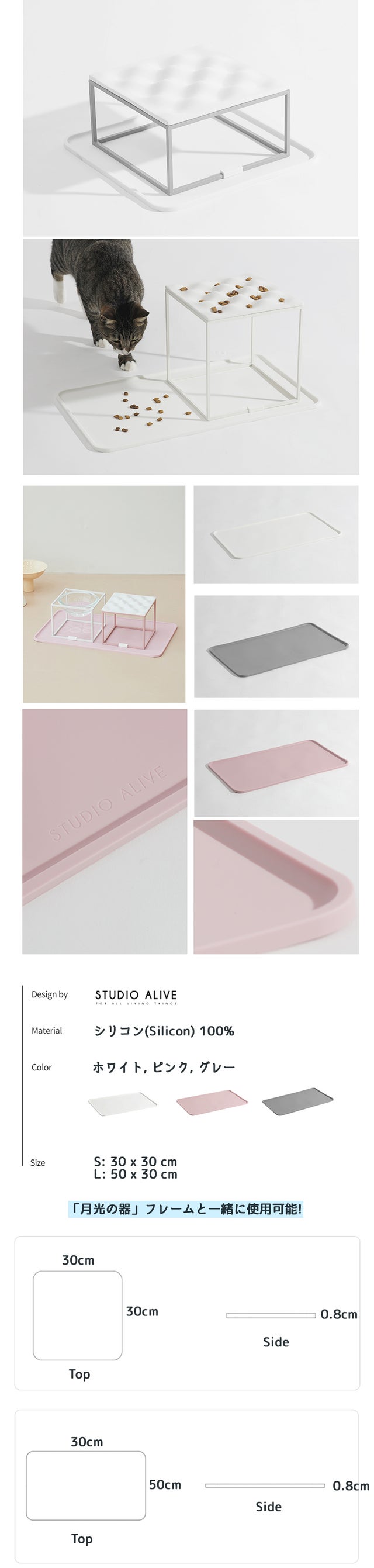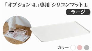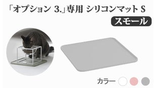 食べ物や水が床に落ちて汚れるのを防ぎ、器がずれないようにする、専用シリコンの食卓マットオプションを追加することができます。