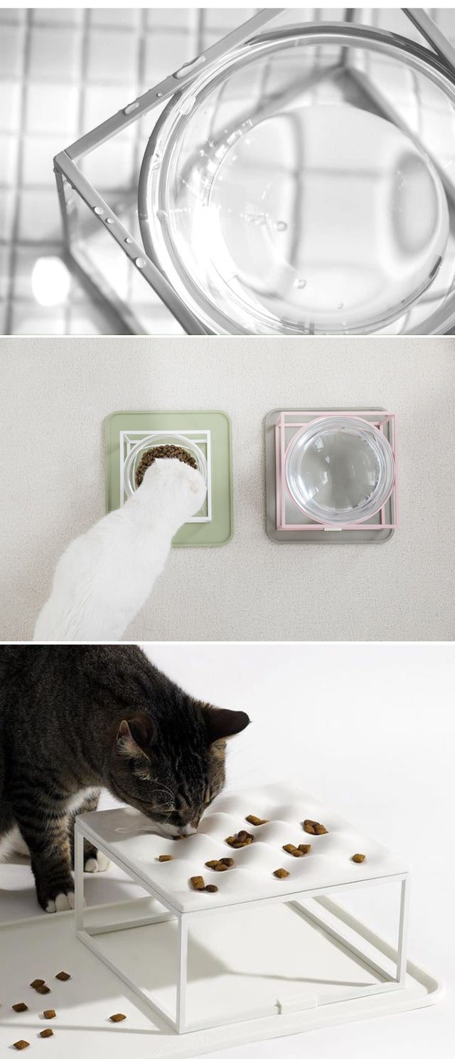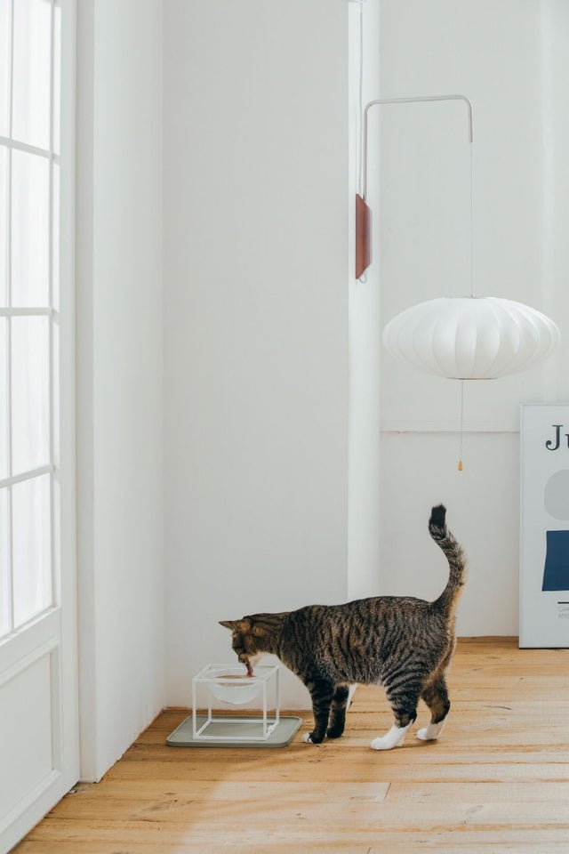 ペットたちにとって器の高さはとても重要な要素だということをご存知ですか?体を曲げたり、首を下げて食事をすると姿勢が悪くなり、長期的に消化器官に問題を引き起こすことがあります。特に猫の場合、嘔吐しやすい食道構造になっており、低い食器で首を下げながら食べ物を摂取してしまうと、食べ物が食道を刺激し嘔吐しやすくなります。低い器はストレスと健康上の問題につながります。また、ペットの食事量と飲水量が減ってしまう原因にもなります。