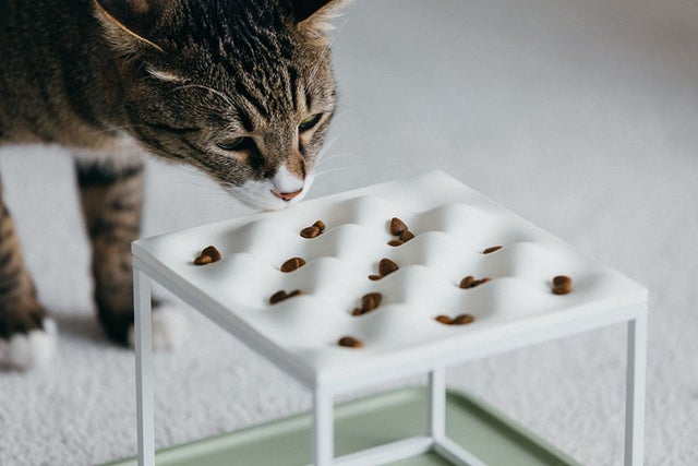 でこぼこ餌パズルで、食事の時間をもっと楽しく!急いで食べるペットたちの食事速度の調節とストレス解消のために、でこぼこ餌パズルオプションを追加することができます。