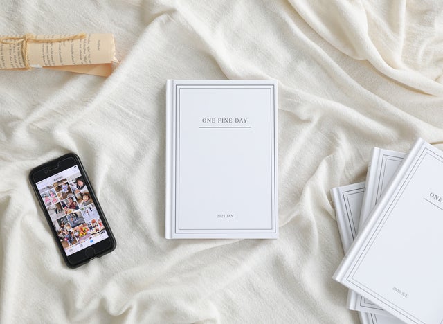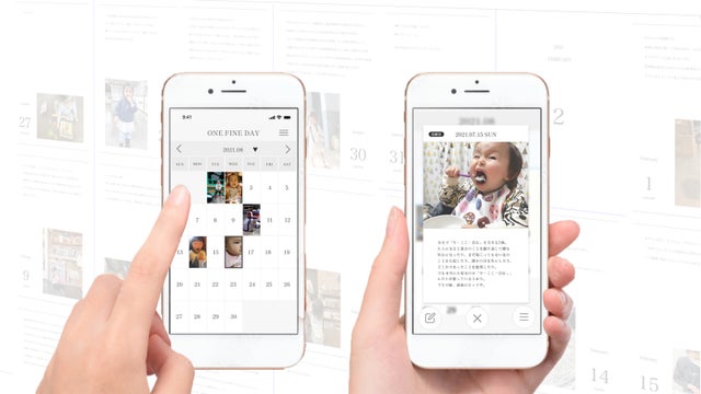 スマホアプリ「ONE FINE DAY」は手軽に日々の成長や出来事を残し、記録がたまった時点で1冊のダイアリーブックとして製本することができます。