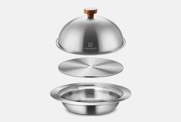 ウォーマーにぴったりフィットするフタをセットにしました。ドームデザインで料理の形状を保つのはもちろん、熱と水分が抜け出るのを防いで料理の風味を一層高めてくれます。硬くなった蒸し肉も、蓋をすればしっとり蘇ります。