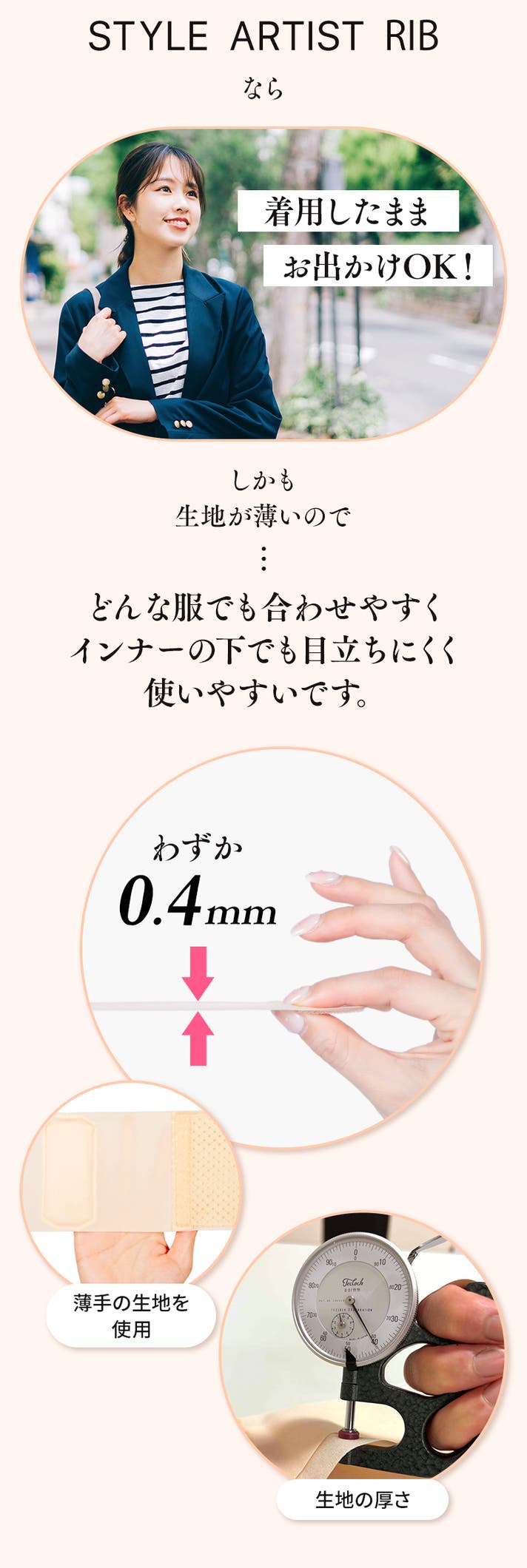 STYLE ARTIST RIBなら着用したままお出かけが可能です。