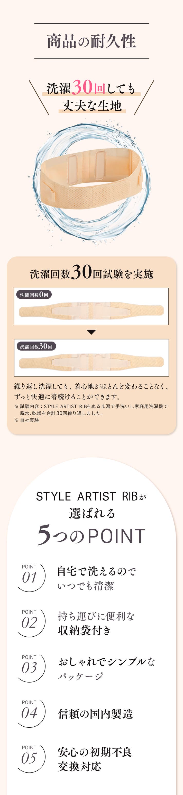 ※試験内容:STYLE ARTIST RIBをぬるま湯で手洗いし家庭用洗濯機で脱水、乾燥を合計30回繰り返しました。