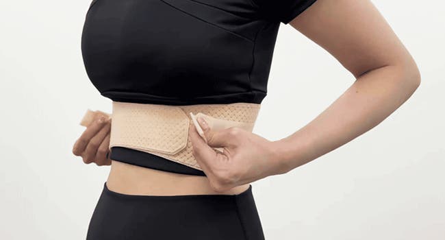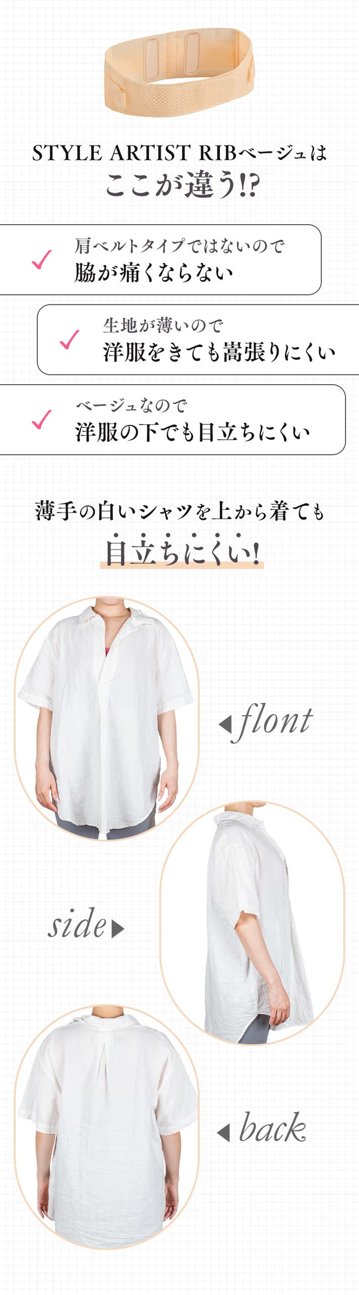 肋骨にベルトを巻くだけで姿勢をサポートします。