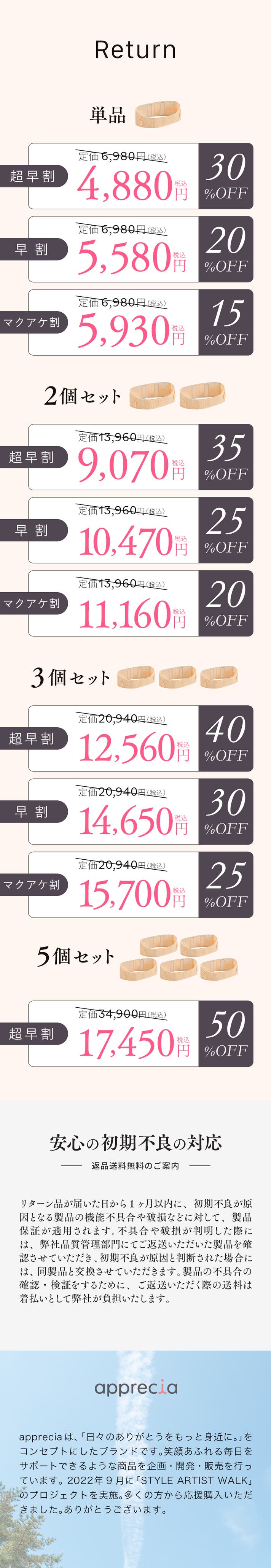 単品/2個セット/3個セット/5個セットを、超早割・早割・Makuake割にてご用意しています。