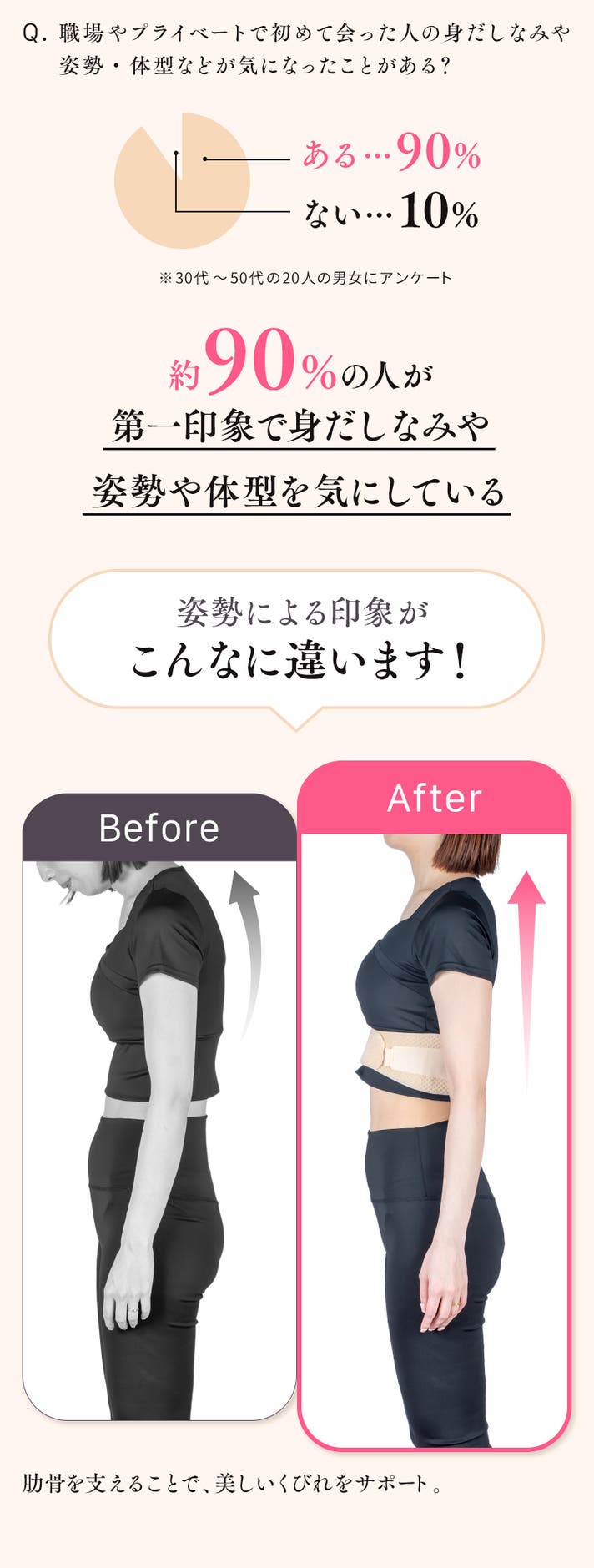 肩ベルト不要!肋骨サポートで姿勢維持